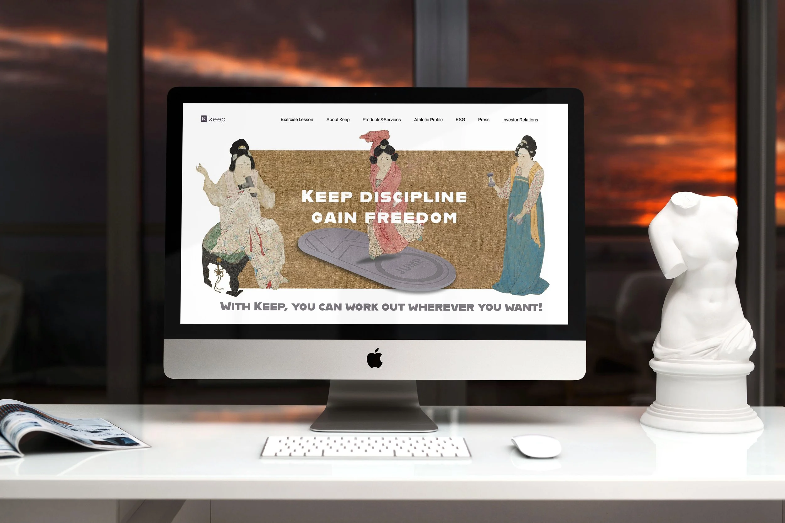 This project reimagines Court Ladies Preparing Newly Woven Silk, a famous artwork from the Song dynasty, by blending its historical aesthetic with contemporary fitness culture. The original painting captures the elegance and fluidity of women’s movement, which resonates with today’s workout experiences. Inspired by this connection, I created a series of posters for Keep, a well-known Chinese sports and fitness brand, integrating traditional art with modern workout equipment.